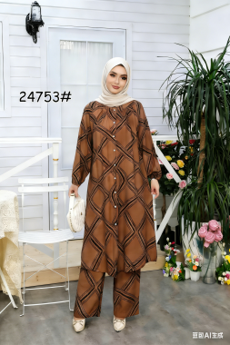 Chain Floral Long Blouse Set